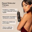 2. Rinse and apply the Repair Molecular Therapy Mask to damp hair. Its formula has been optimized to condition and give silkiness without giving the hair a “weighty” sensation. It is excellent for facilitating hair detangling and styling. Rinse.